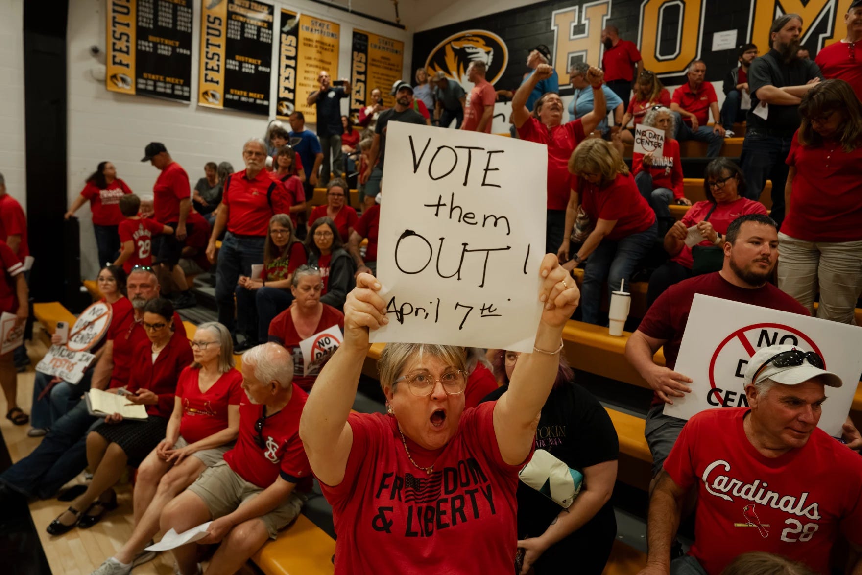 Let’s start in my neck of the woods, in Festus, Missouri, a Mississippi River town just south of St. Louis. Last week, the eight-member Festus city council sat at a table at one end of the Festus High School gymnasium to hear public comment and vote on an ordinance that would permit a new $6 billion data center in town. The data center plan was massively unpopular among residents, who filled the rafters of the gym and, one by one, walked to the lectern at center court to berate the plan, and the council, for even considering it (until the mayor of Festus, Sam Richards, cut off speakers two hours into the meeting). In a scene both remarkable and predictable, Festus residents booed, jeered, and chanted “vote them out” as the council voted to approve the ordinance, 6-2.